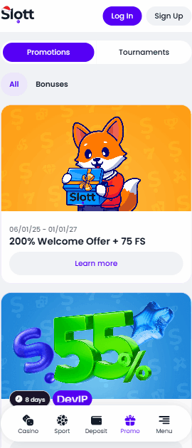 - Başlatma ve Oturum Açma: Kurulumdan sonra, Slott Casino app icon will appear on your home screen. Uygulamayı başlatın ve mevcut kimlik bilgilerinizle giriş yapın veya yeni bir hesap oluşturun.
